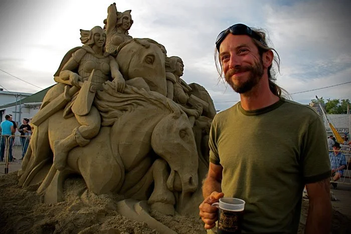 If you have arrived seeking sand sculptures I will not disappoint. I’m Carl Jara, a professional sand sculptor from Cleveland, Ohio. Feel free to peruse the links above where you will discover in-depth sand sculpture instruction, the answer to why sand sculptures don’t fall down, and photos of dozens of my sculptures. Thanks for stopping by, please enjoy!